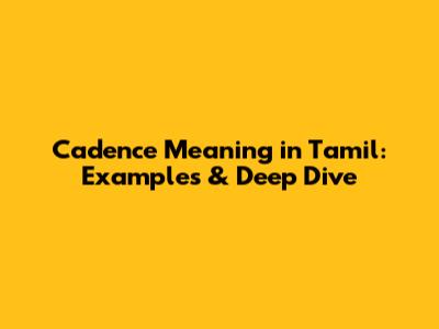Cadence Meaning in Tamil: Decoding the Translation