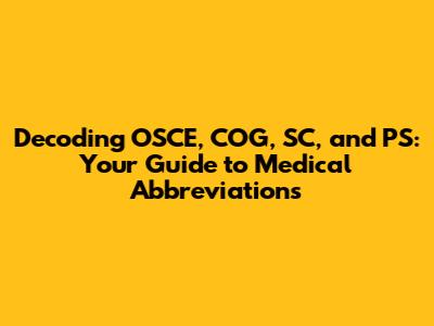 Hey everyone! Ever stumbled upon a string of letters in the medical world and felt totally lost? You're definitely not alone! The language of medicine is packed with abbreviations, and understanding them is crucial, especially when you're navigating the ins and outs of healthcare. Today, we're going to break down some key abbreviations: OSCE, COG, SC, and PS. These are super important, especially if you're in medical education or working in clinical settings. Let's get started, shall we?