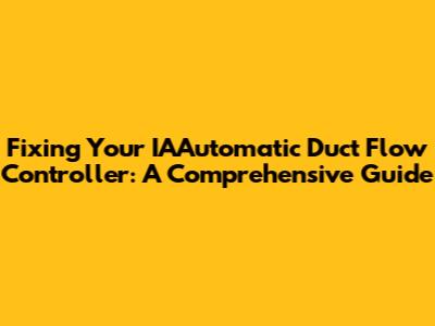 Fixing Your IAAutomatic Duct Flow Controller: A Guide
