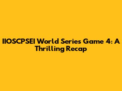 Hey sports fanatics, buckle up! We're diving deep into the IIOSCPSEI World Series Game 4, a contest that had everyone on the edge of their seats! The energy in the stadium was electric, the tension was palpable, and the plays? Oh, they were something else. Let's break down this monumental game, shall we?