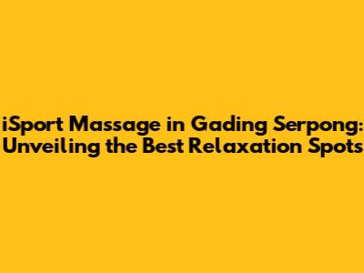 Hey guys! Are you tired of the daily grind and looking for a way to unwind? Well, you're in luck! Today, we're diving deep into the world of iSport massage in Gading Serpong, a haven for those seeking the ultimate relaxation and rejuvenation experience. Get ready to discover the best massage parlors, the types of massages available, and everything you need to know to make your experience unforgettable. Let's get started!