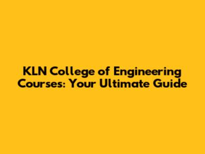 KLN College Of Engineering Courses: Your Ultimate Guide