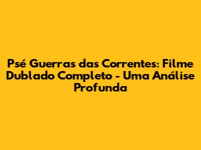 Olá, pessoal! Se você está procurando por Psé Guerras das Correntes filme completo dublado, você veio ao lugar certo. Neste artigo, vamos mergulhar fundo neste filme eletrizante, explorando todos os detalhes que o tornam tão cativante. Prepare-se para uma análise completa, com curiosidades, onde assistir e muito mais. Vamos desvendar juntos os mistérios de Psé Guerras das Correntes!